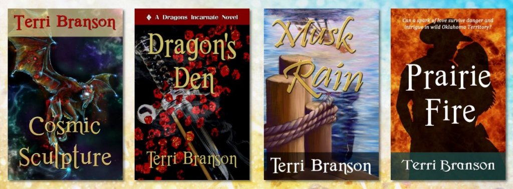 My novel-length works are written in genre fiction. That includes (with more coming soon): DRAGON’S DEN (science fiction with paranormal), MUSK RAIN (contemporary paranormal romance), and PRAIRIE FIRE (western paranormal romance). For short stories, try the award-winning science fiction and fantasy anthology COSMIC SCULPTURE.