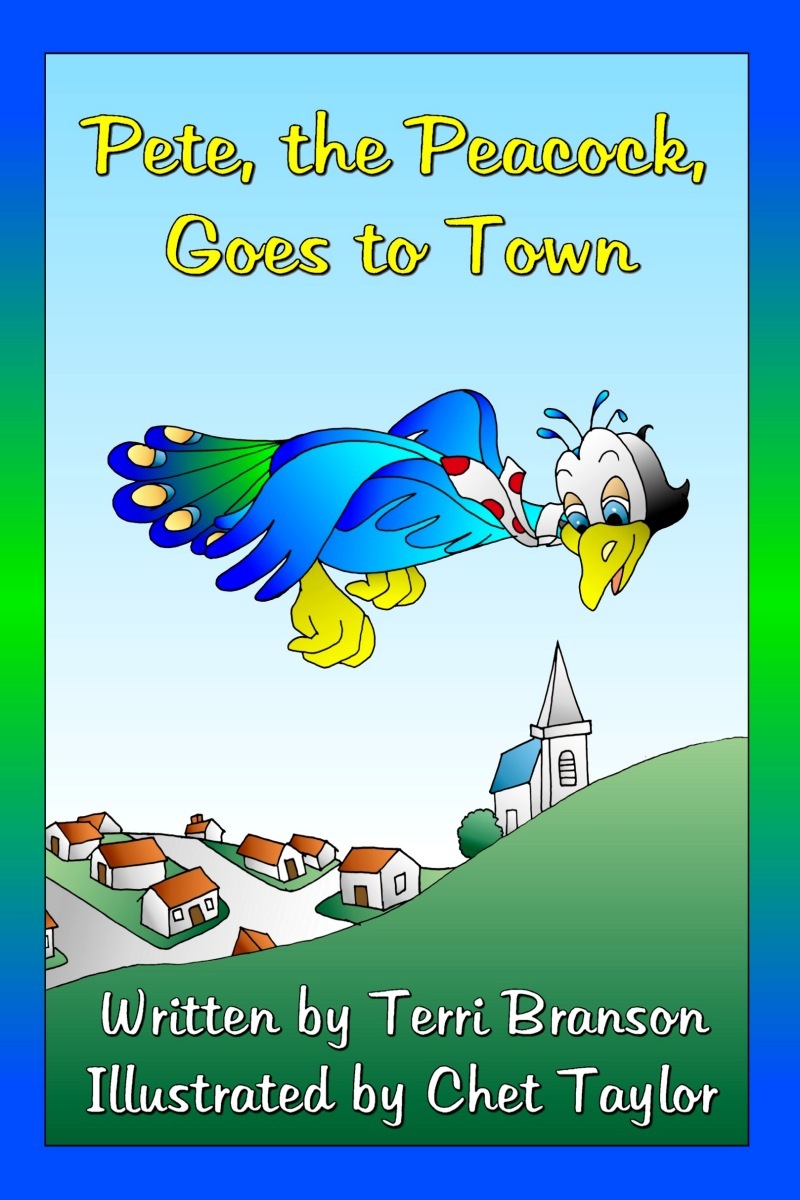 PETE, THE PEACOCK, GOES TO TOWN [©2005] Written by Terri Branson | Illustrated by Chet Taylor | Children’s Picture Book (G) 24 pages color | Released in print and ebook on the Kittycat Books label of Dragonfly Publishing | Also read: PETE, THE PEACOCK, GOES TO THE ZOO