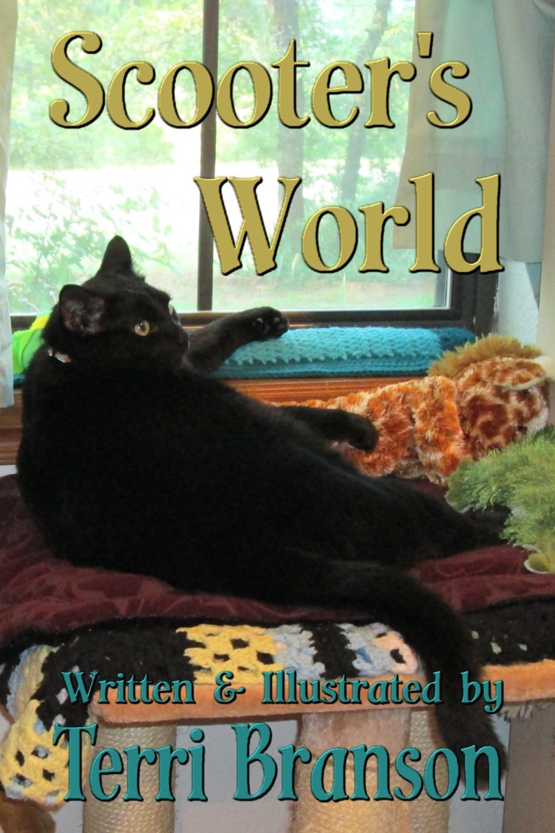 SCOOTER’S WORLD [©2013] Written & Illustrated by Terri Branson | Children’s Picture Book / Adult Coffee Table Book (24 pages color) rated G for all ages and audiences | Released on the Kittycat Books label of Dragonfly Publishing | WEB & BLOG: scooterscatworld.com