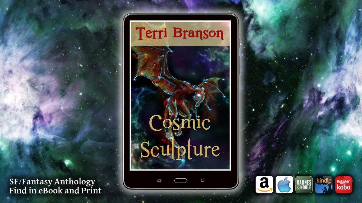 Read COSMIC SCULPTURE by Terri Branson [Science Fiction & Fantasy Anthology available in ebook and print] Read tales of Mars, Atlantis, dragons, faeries, reincarnation, vampires, and more in this award-winning anthology. Also includes the DRAGON’S DEN novel. — Read an excerpt, watch a video, and find sales links…