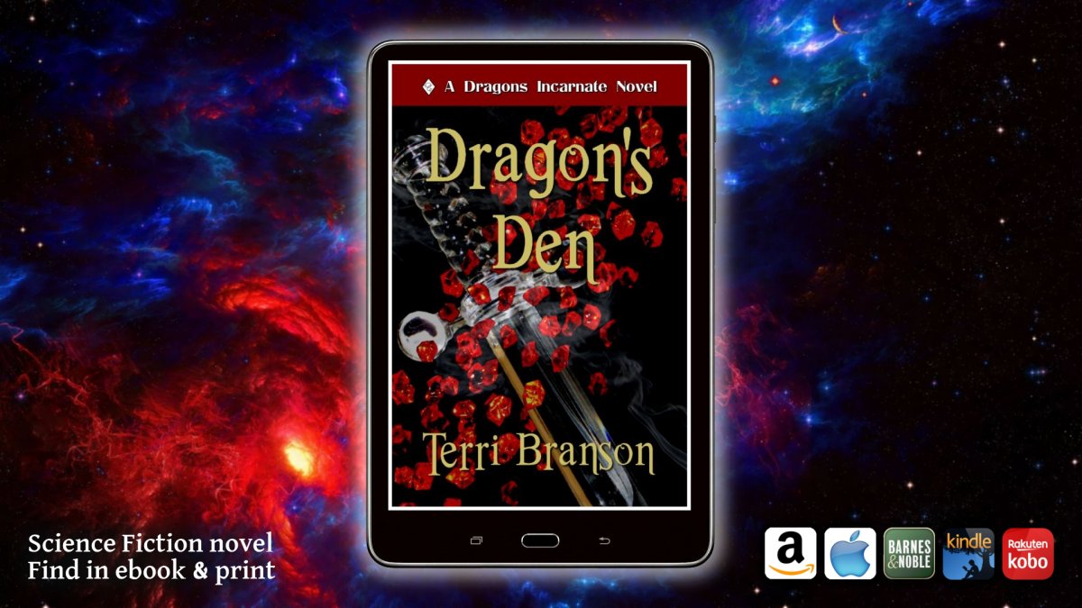 Read DRAGON’S DEN by Terri Branson [Science Fiction novel available in ebook and print] On an icy and isolated planet, martial arts master Raza finds danger and intrigue in his hunt for an illegal mining operation. To survive both danger and intrigue, he must embrace what he is: a dragon incarnate. — Read an excerpt, watch a video, and find sales links…